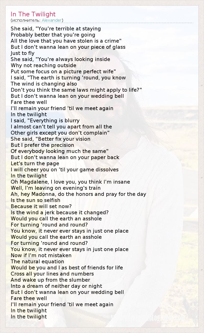 А как ты думаешь, о чем песня "In The Twilight" ?