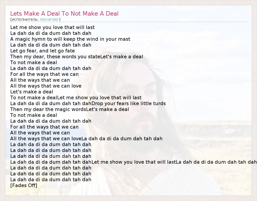 ГлавнаяИсполнителиAlexanderLets Make A Deal To Not Make A Deal