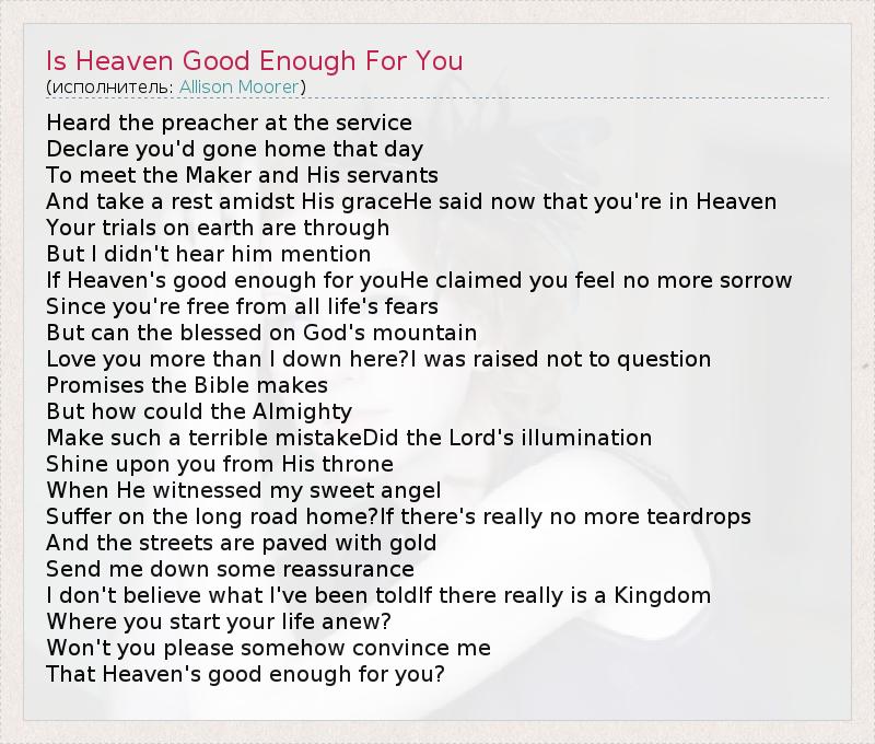 А как ты думаешь, о чем песня "Is Heaven Good Enough For You" ?
