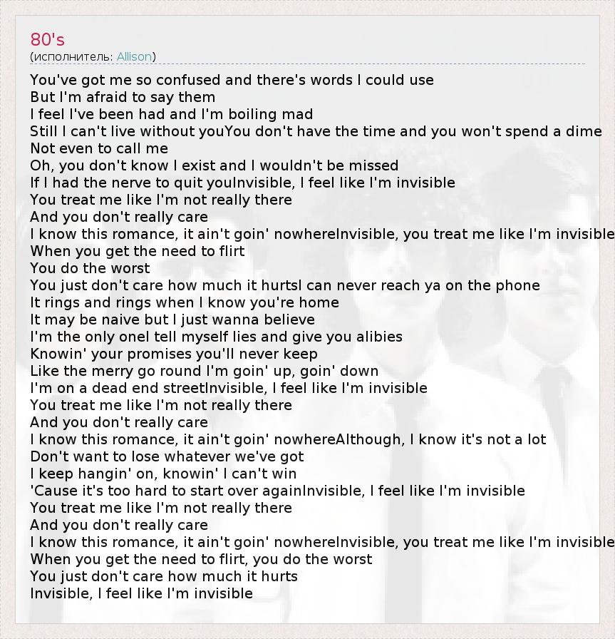 I'm on a dead end streetInvisible, I feel like I'm invisible