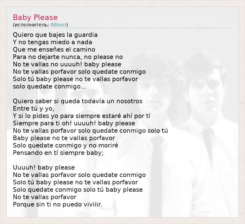 Quiero que bajes la guardia Y no tengas miedo a nada Que me enseñes el camino Para no dejarte nunca, no please no No te vallas no uuuuh! baby please No te vallas porfavor solo quedate conmigo Solo tú baby please no te vallas porfavor solo quedate conmigo... Quiero saber si queda todavía un nosotros Entre tú y yo, Y si lo pides yo para siempre estaré ahí por tí Siempre para ti oh! uuuuh! baby please No te vallas porfavor solo quedate conmigo solo tú Baby please no te vallas porfavor Solo quedate conmigo y no moriré Pensando en tí siempre baby; Uuuuh! baby please No te vallas porfavor solo quedate conmigo Solo tú baby please no te vallas porfavor Solo quedate conmigo solo tú baby please No te vallas porfavor Porque sin ti no puedo viviiir.