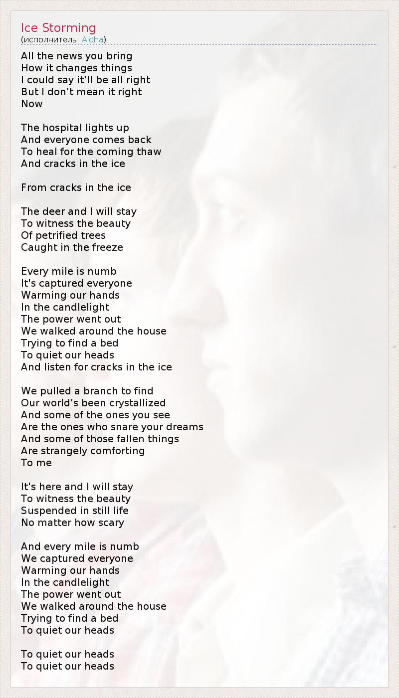 А как ты думаешь, о чем песня "Ice Storming" ?