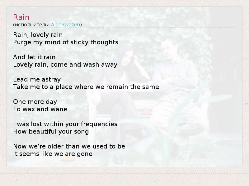 А как ты думаешь, о чем песня "Rain" ?