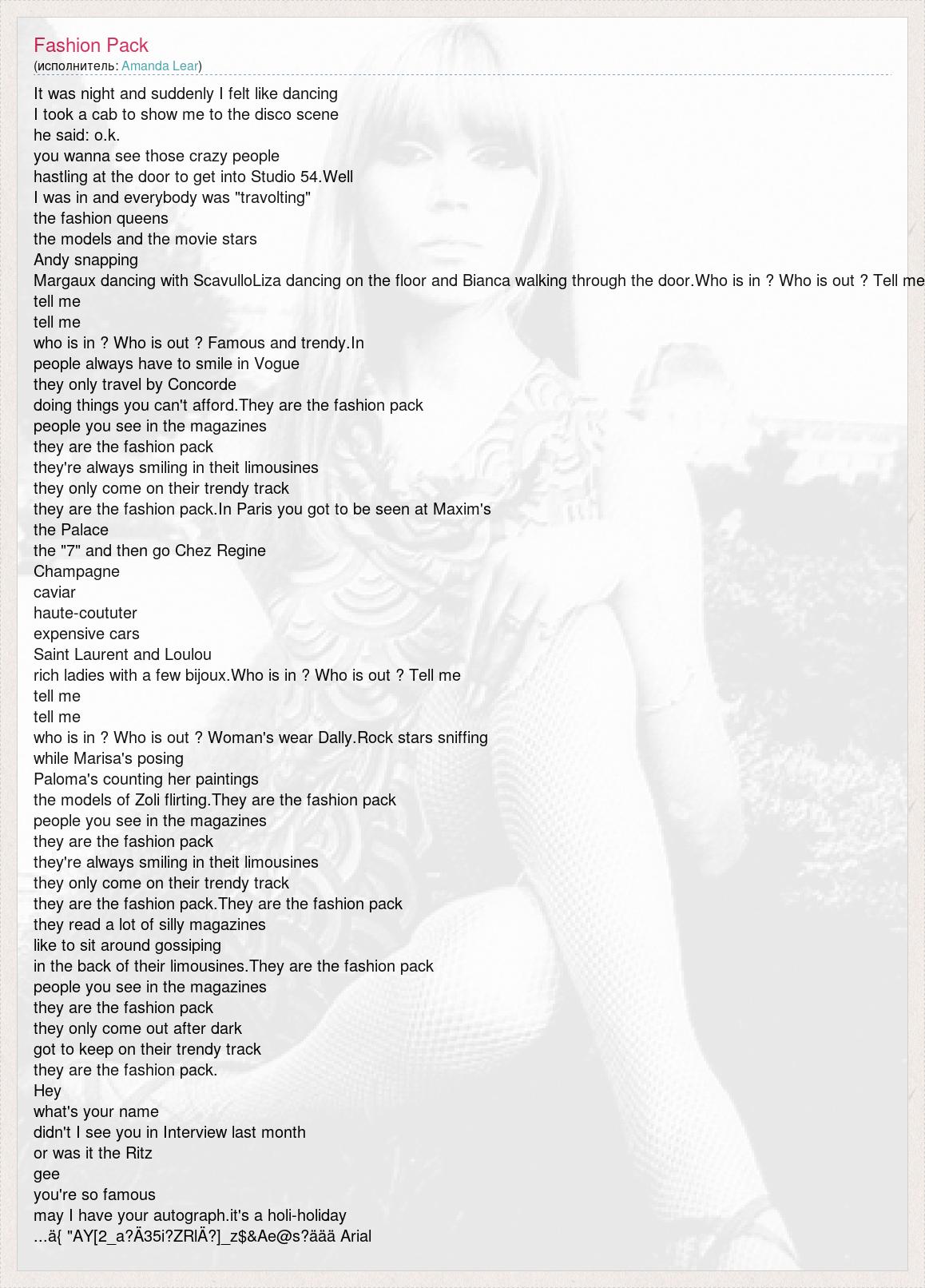 А как ты думаешь, о чем песня "Fashion Pack" ?