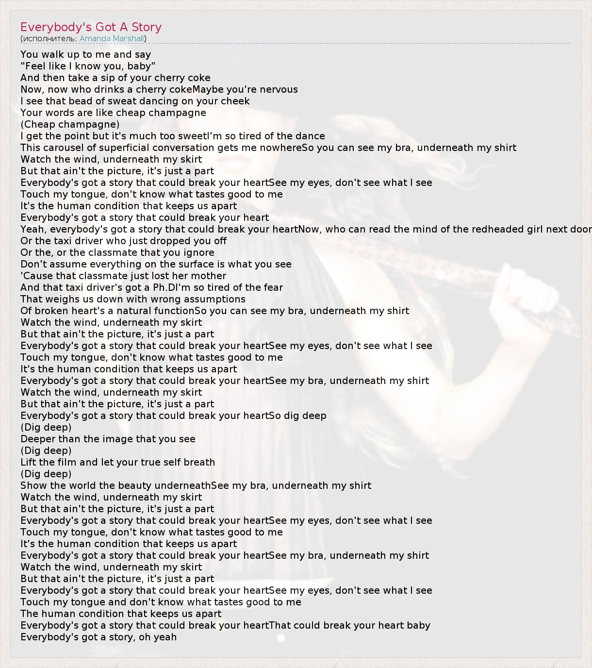 А как ты думаешь, о чем песня "Everybody's Got A Story" ?