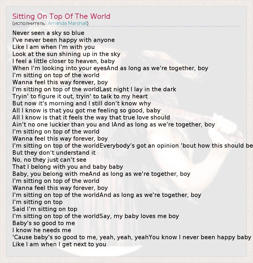 А как ты думаешь, о чем песня "Sitting On Top Of The World" ?