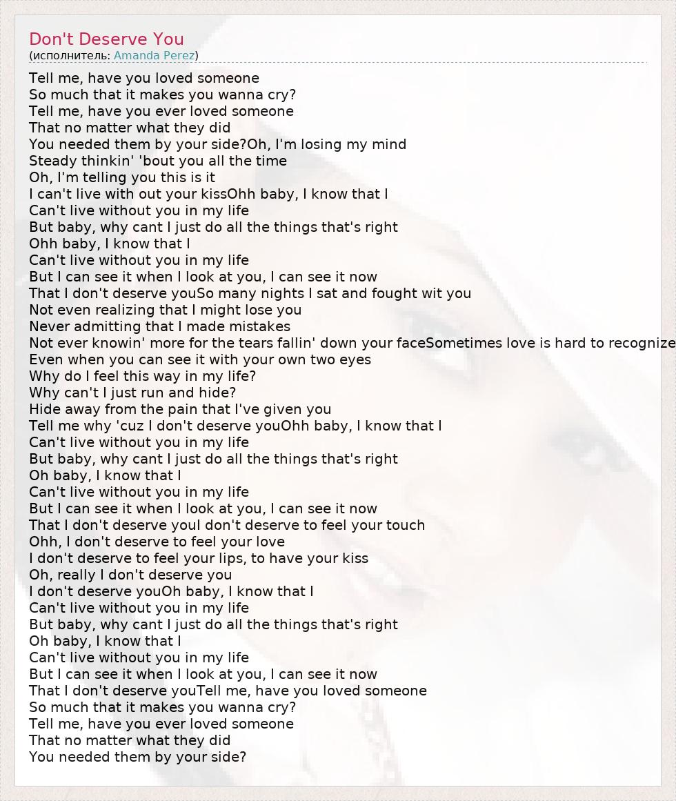 А как ты думаешь, о чем песня "Don't Deserve You" ?