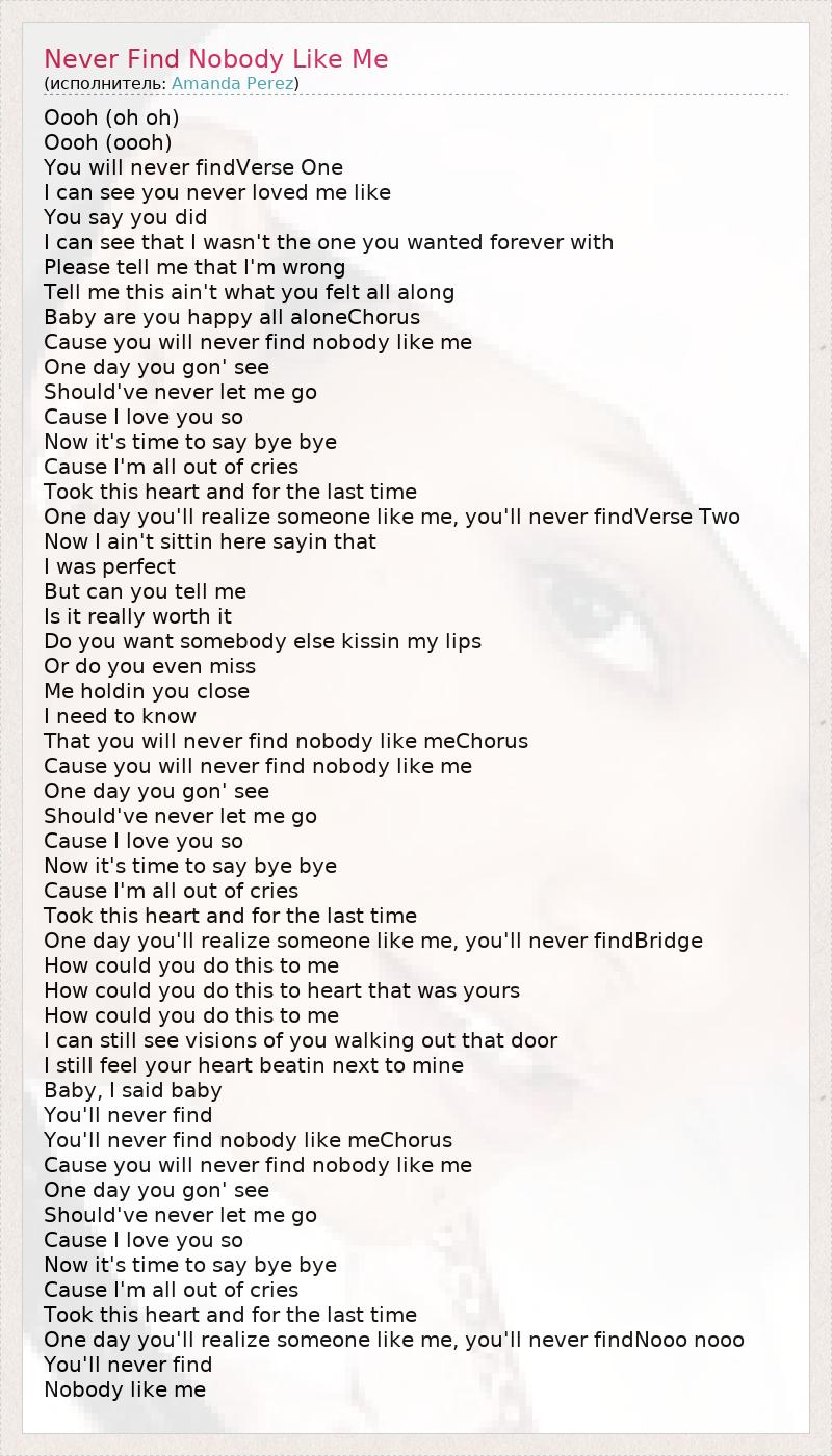 ГлавнаяИсполнителиAmanda PerezNever Find Nobody Like Me