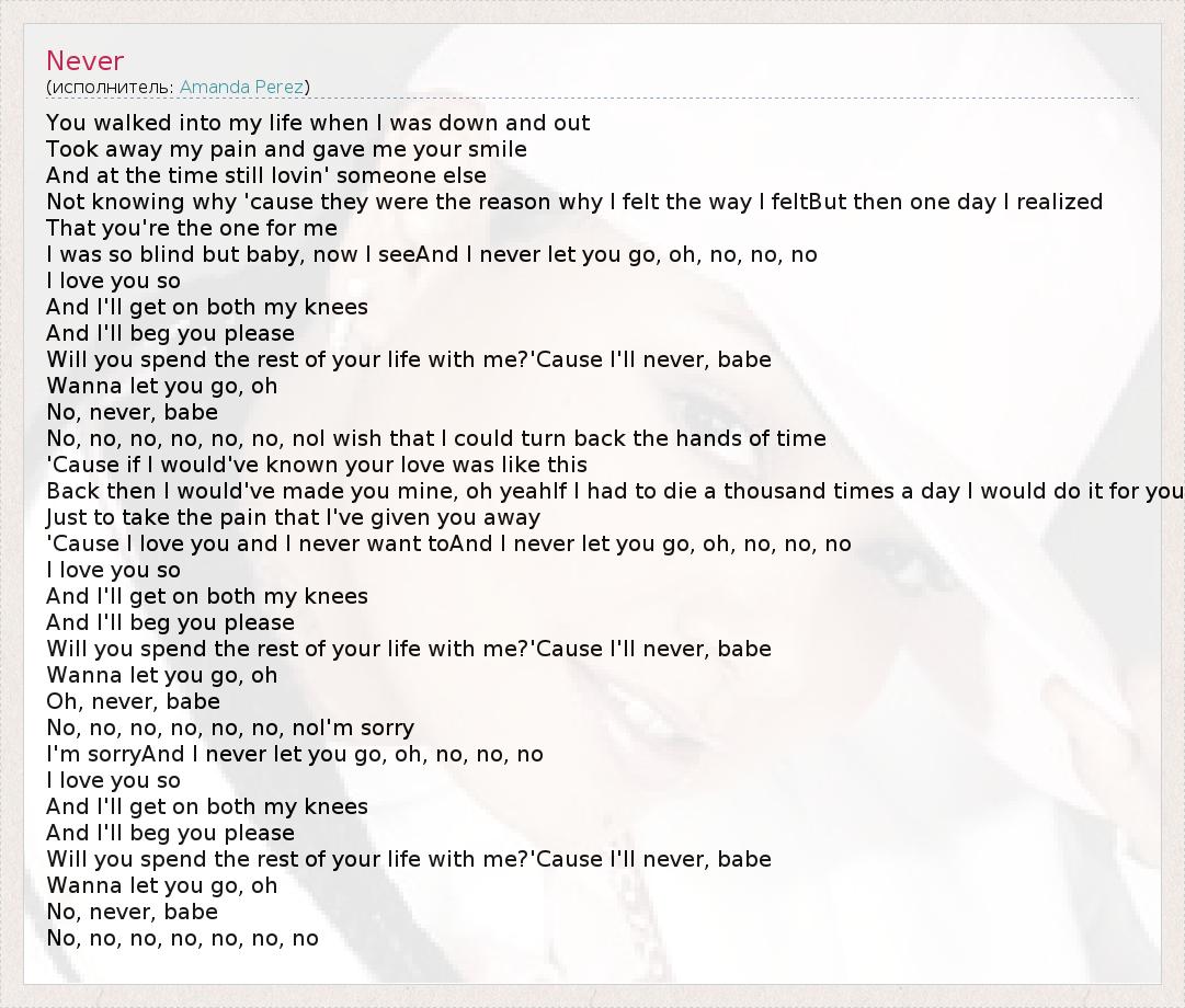 'Cause I love you and I never want toAnd I never let you go, oh, no, no, no