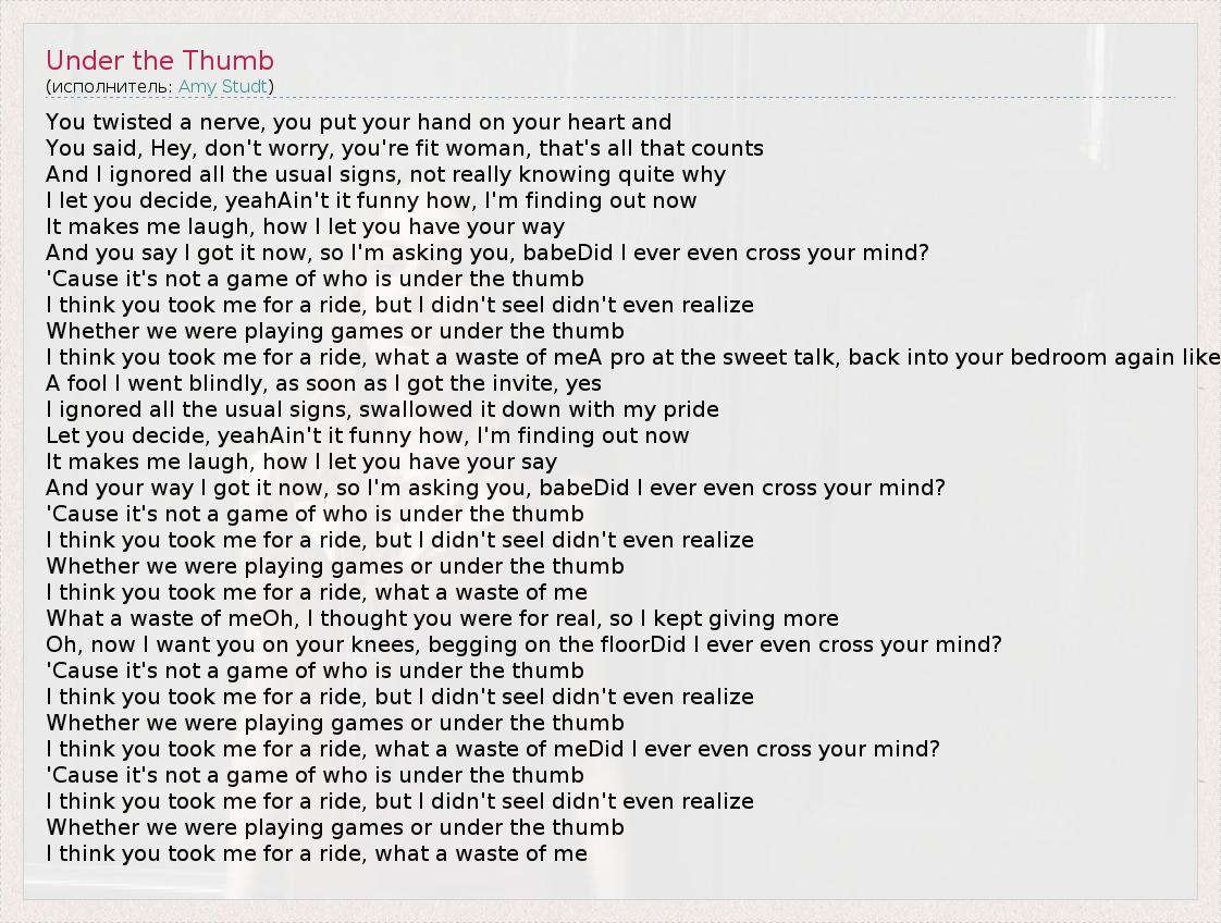 А как ты думаешь, о чем песня "Under the Thumb" ?