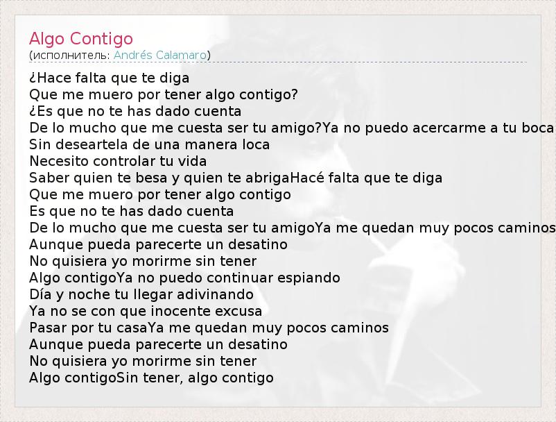 А как ты думаешь, о чем песня "Algo Contigo" ?