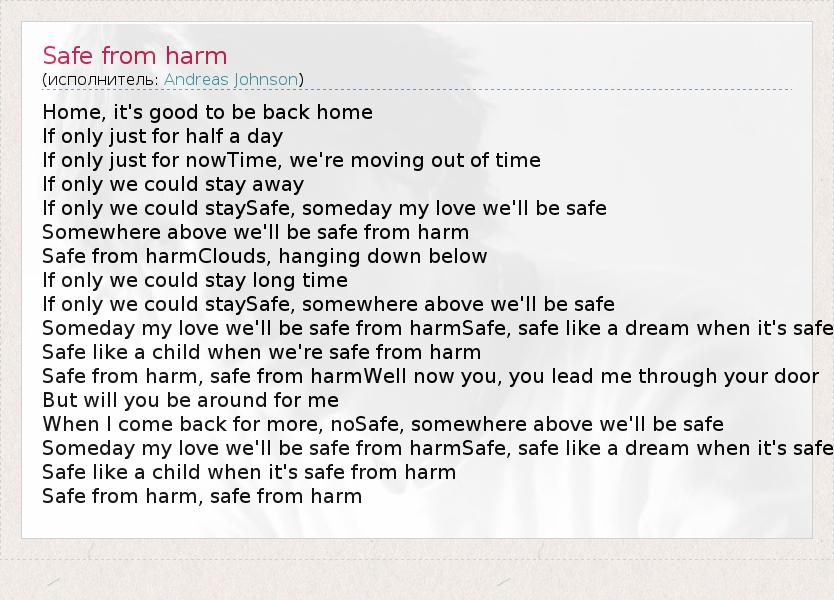 А как ты думаешь, о чем песня "Safe from harm" ?