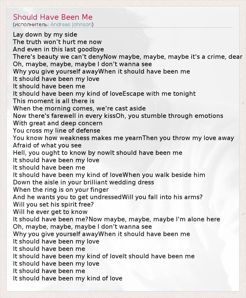 А как ты думаешь, о чем песня "Should Have Been Me" ?