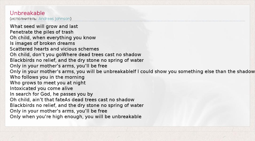 А как ты думаешь, о чем песня "Unbreakable" ?