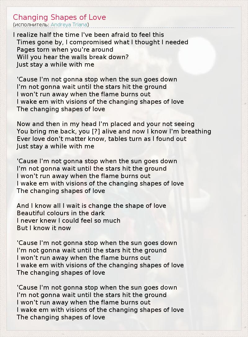 А как ты думаешь, о чем песня "Changing Shapes of Love" ?