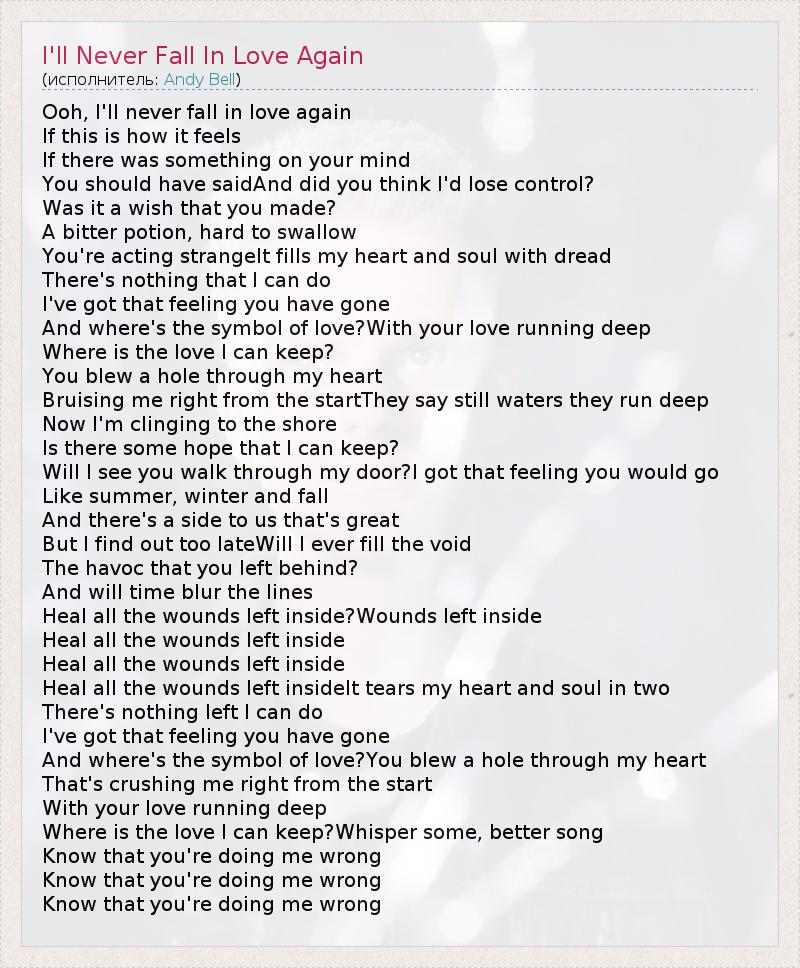А как ты думаешь, о чем песня "I'll Never Fall In Love Again" ?