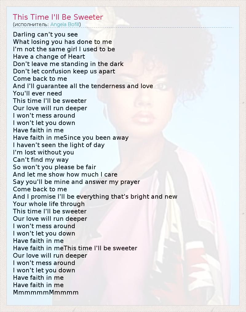 ГлавнаяИсполнителиAngela BofillThis Time I'll Be Sweeter