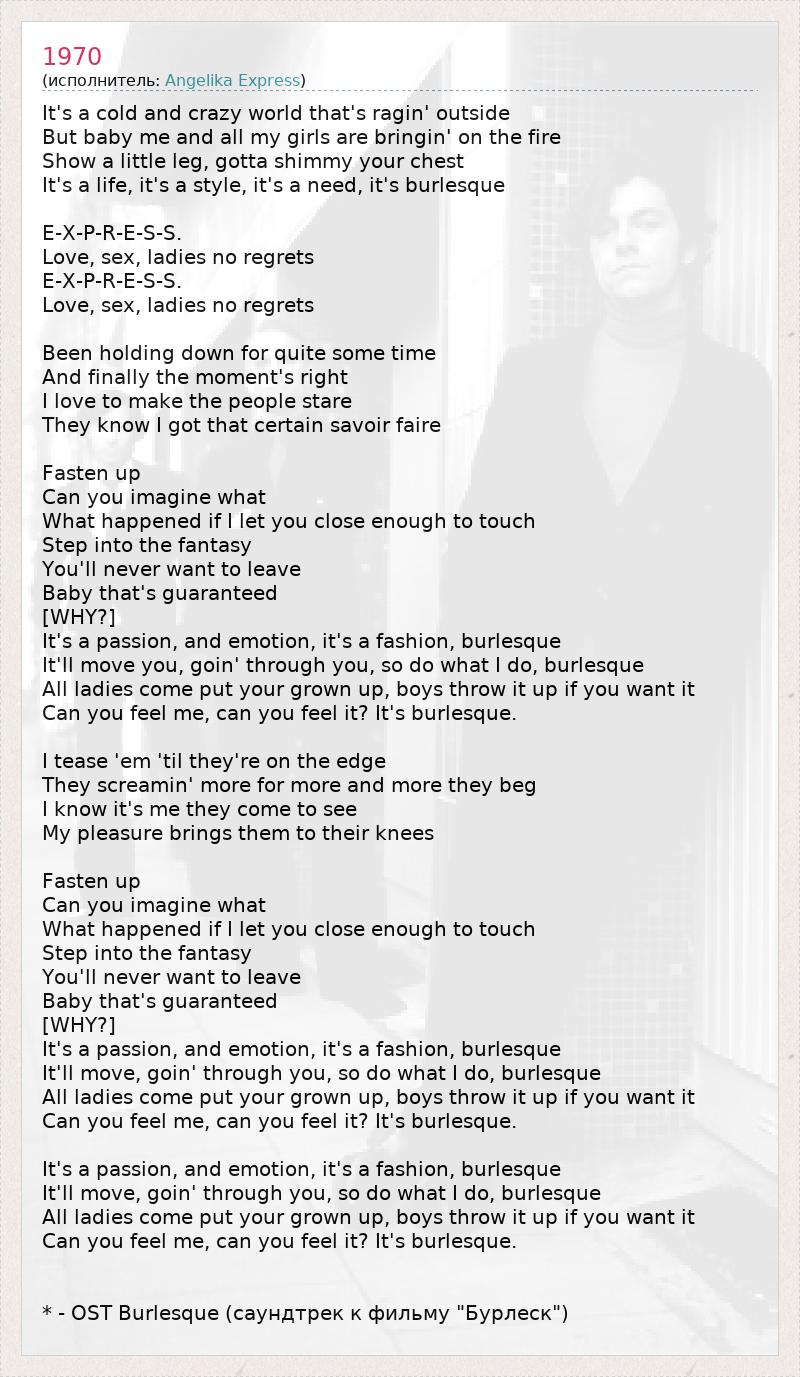 Can you feel me, can you feel it? It's burlesque.