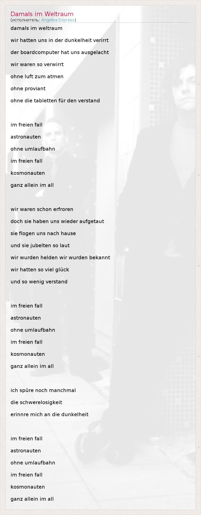 А как ты думаешь, о чем песня "Damals im Weltraum" ?
