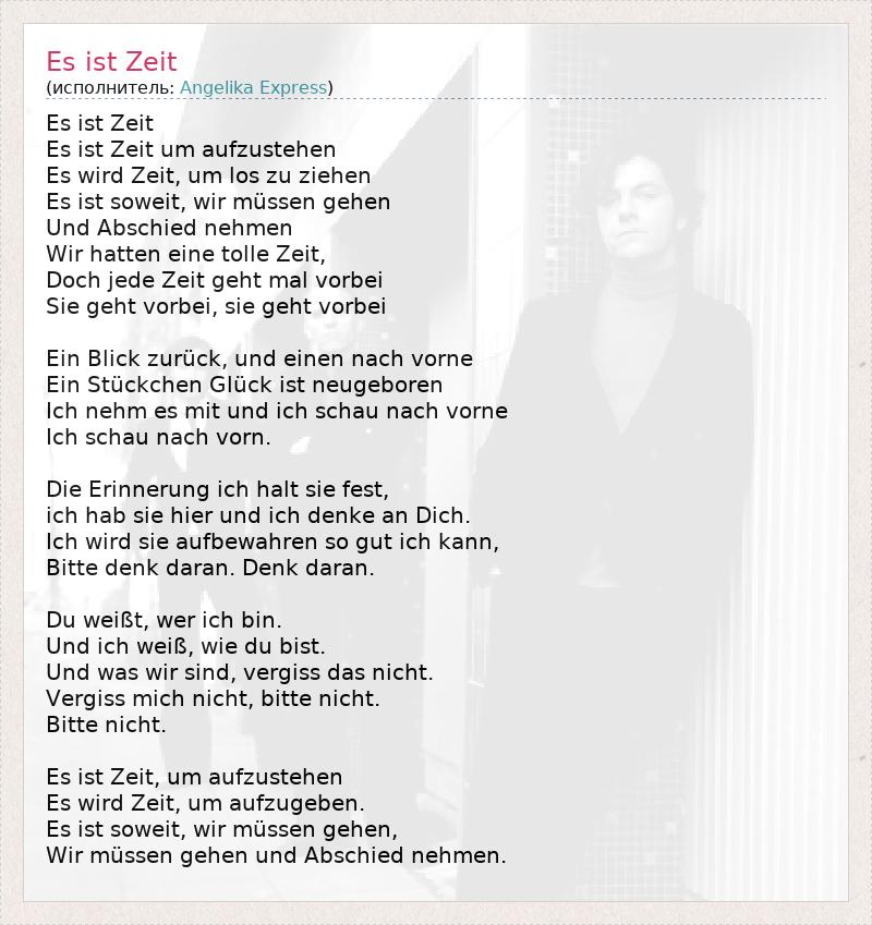 А как ты думаешь, о чем песня "Es ist Zeit" ?