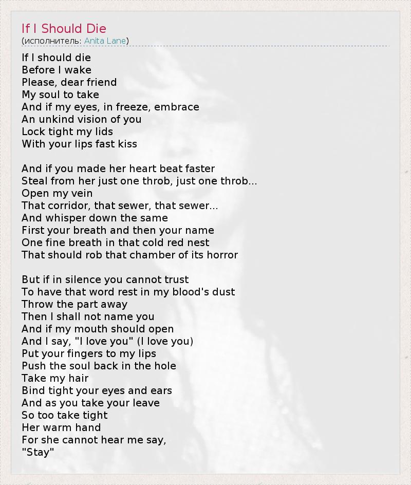 А как ты думаешь, о чем песня "If I Should Die" ?
