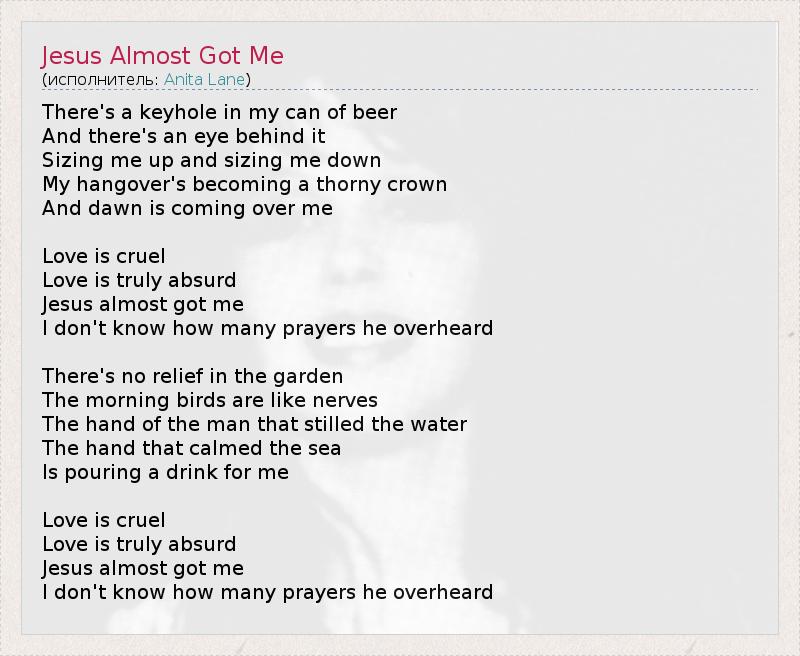 А как ты думаешь, о чем песня "Jesus Almost Got Me" ?
