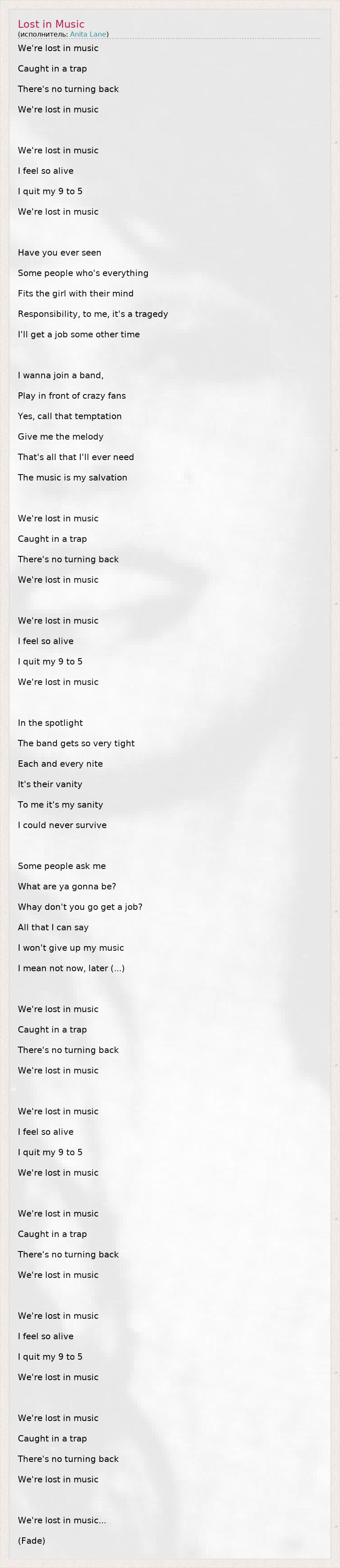 А как ты думаешь, о чем песня "Lost in Music" ?