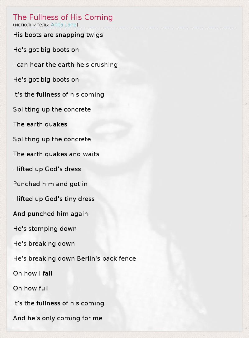А как ты думаешь, о чем песня "The Fullness of His Coming" ?
