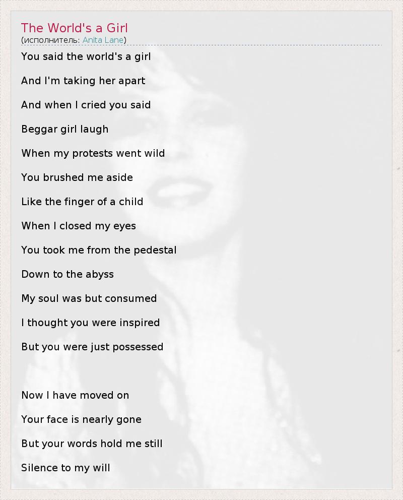 А как ты думаешь, о чем песня "The World's a Girl" ?