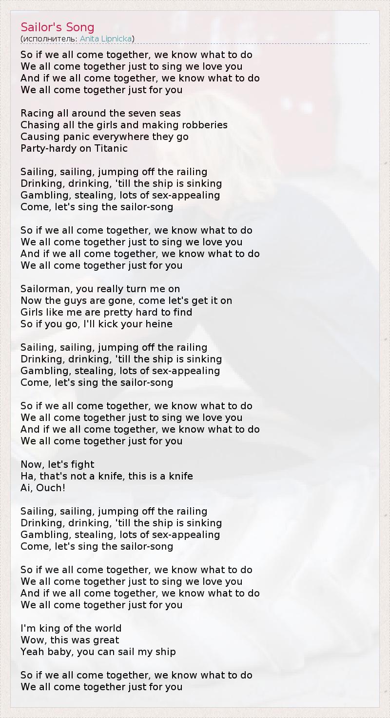 А как ты думаешь, о чем песня "Sailor's Song" ?