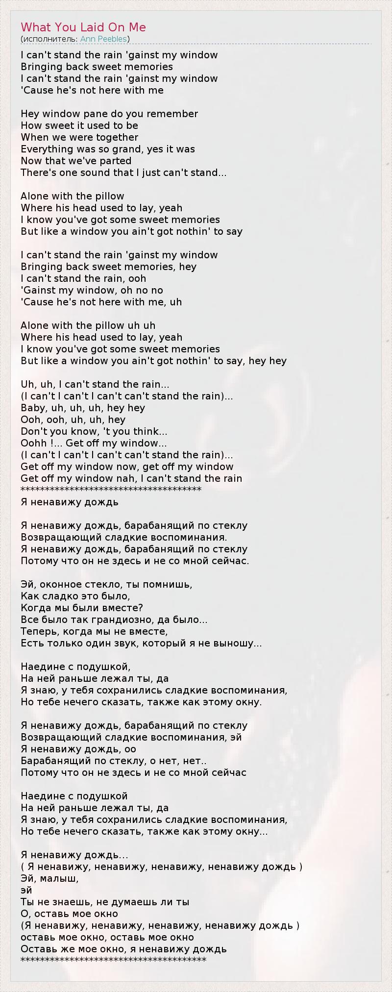 А как ты думаешь, о чем песня "What You Laid On Me" ?