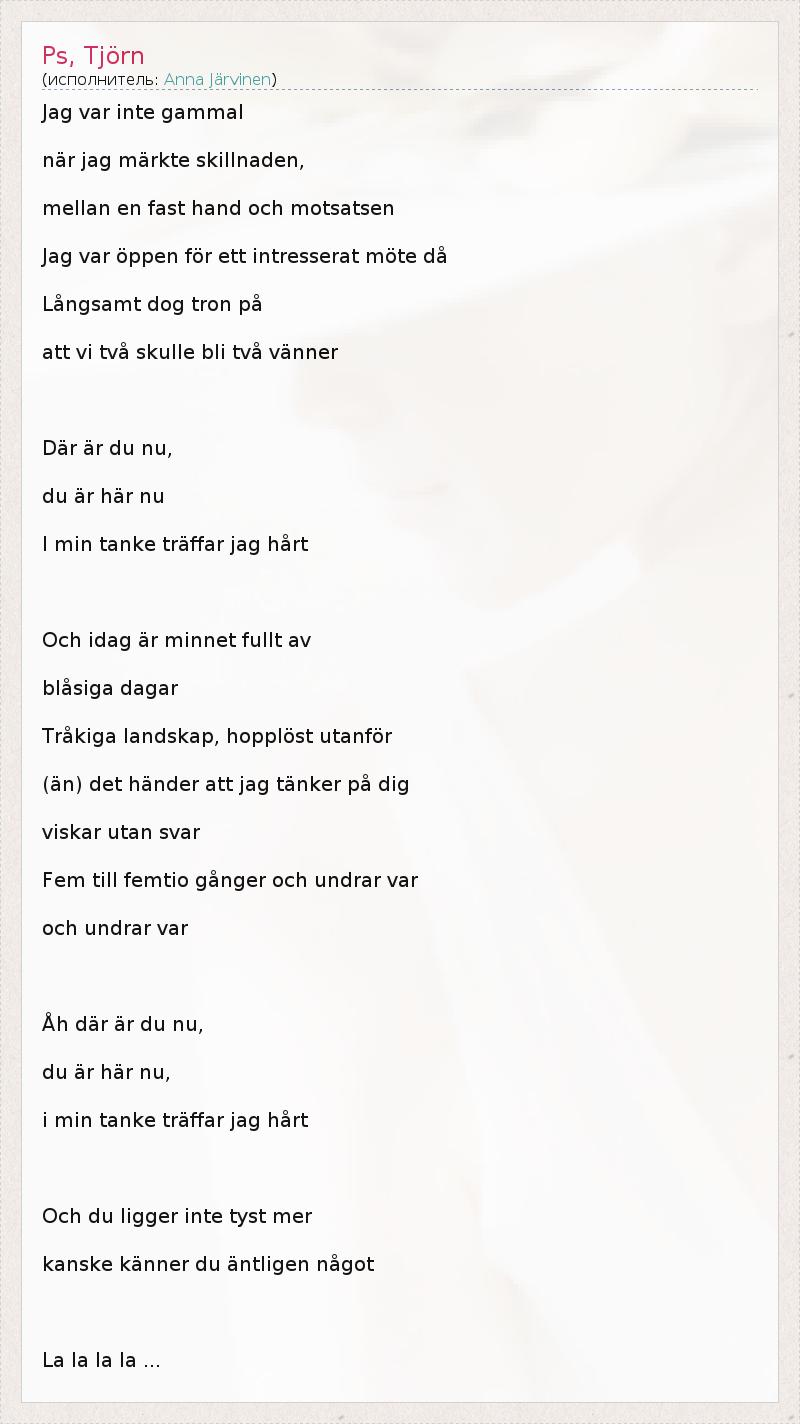 А как ты думаешь, о чем песня "Ps, Tjörn" ?