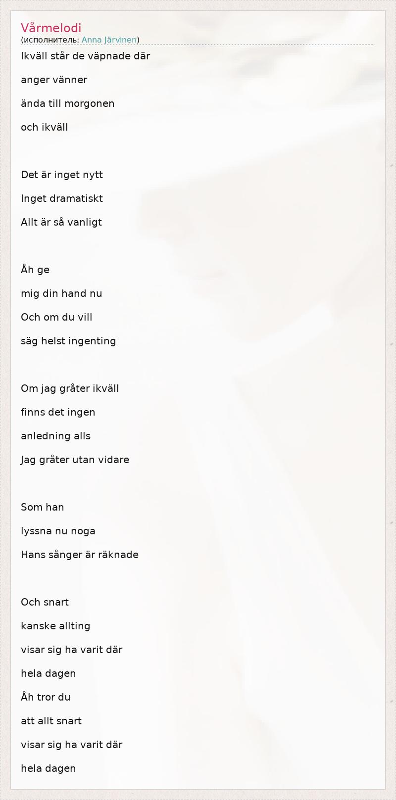 А как ты думаешь, о чем песня "Vårmelodi" ?