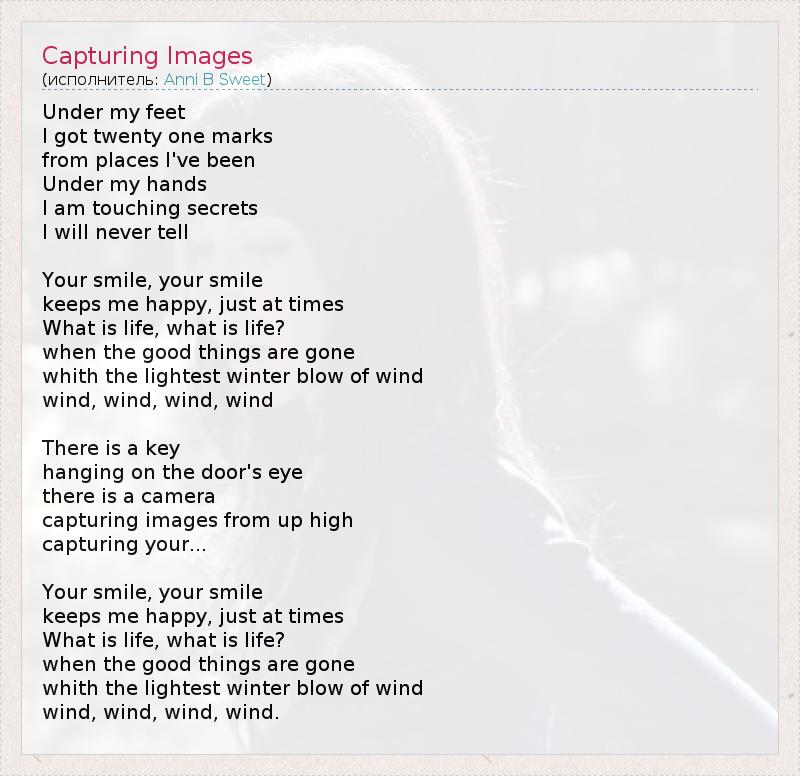 А как ты думаешь, о чем песня "Capturing Images" ?