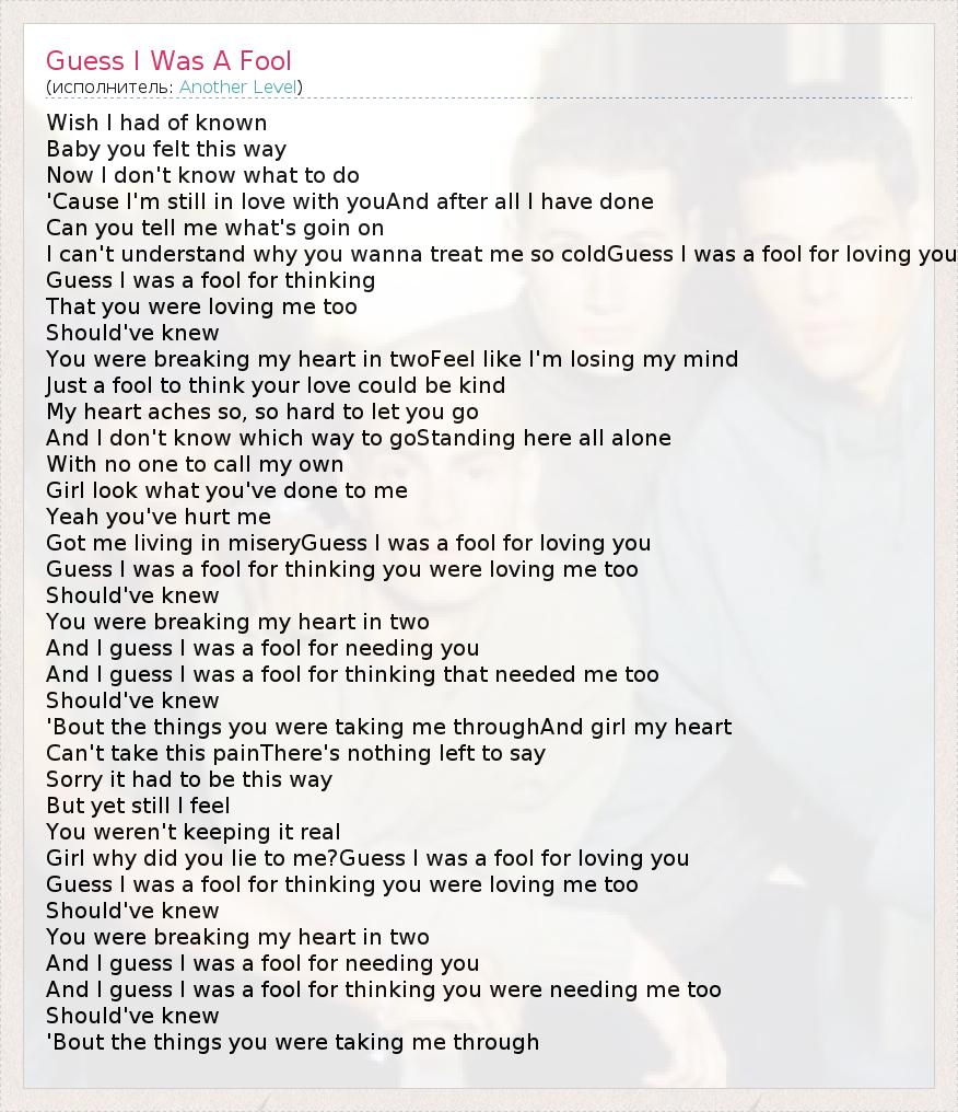 А как ты думаешь, о чем песня "Guess I Was A Fool" ?