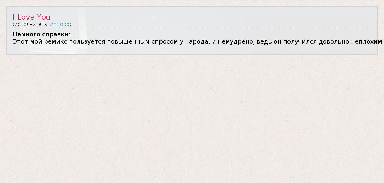 Немного справки: Этот мой ремикс пользуется повышенным спросом у народа, и немудрено, ведь он получился довольно неплохим.