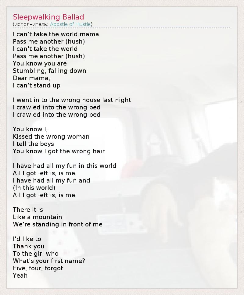 А как ты думаешь, о чем песня "Sleepwalking Ballad" ?