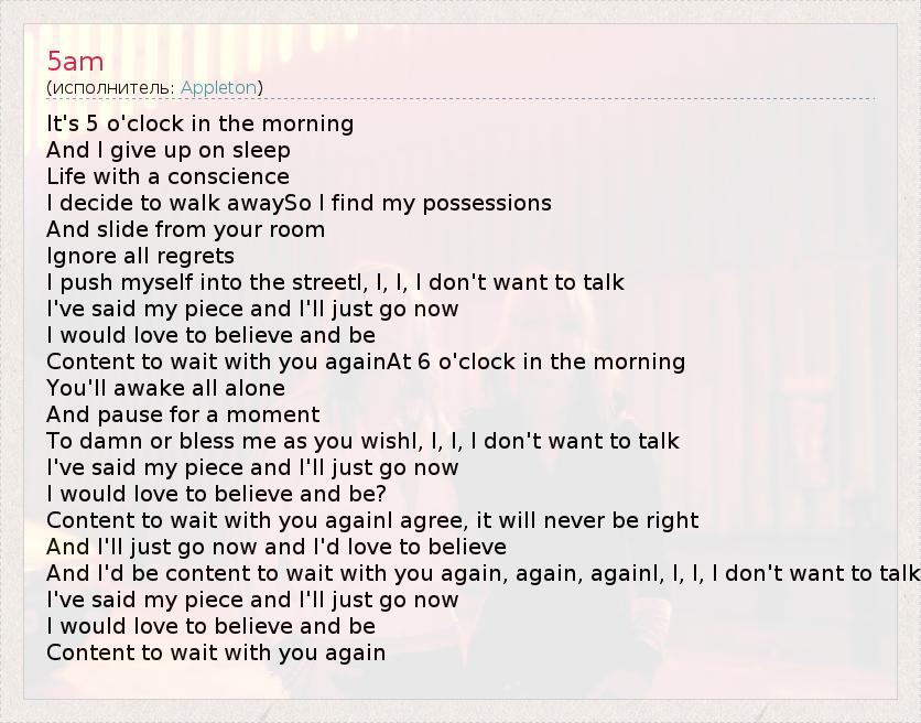 And I'd be content to wait with you again, again, againI, I, I, I don't want to talk