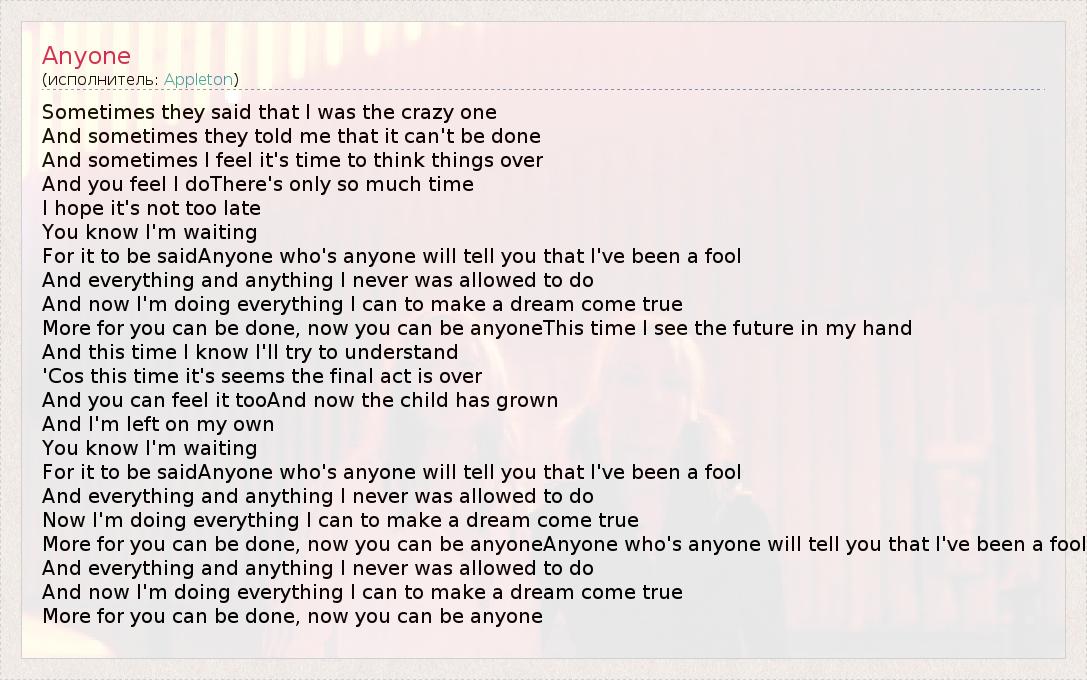 More for you can be done, now you can be anyoneAnyone who's anyone will tell you that I've been a fool