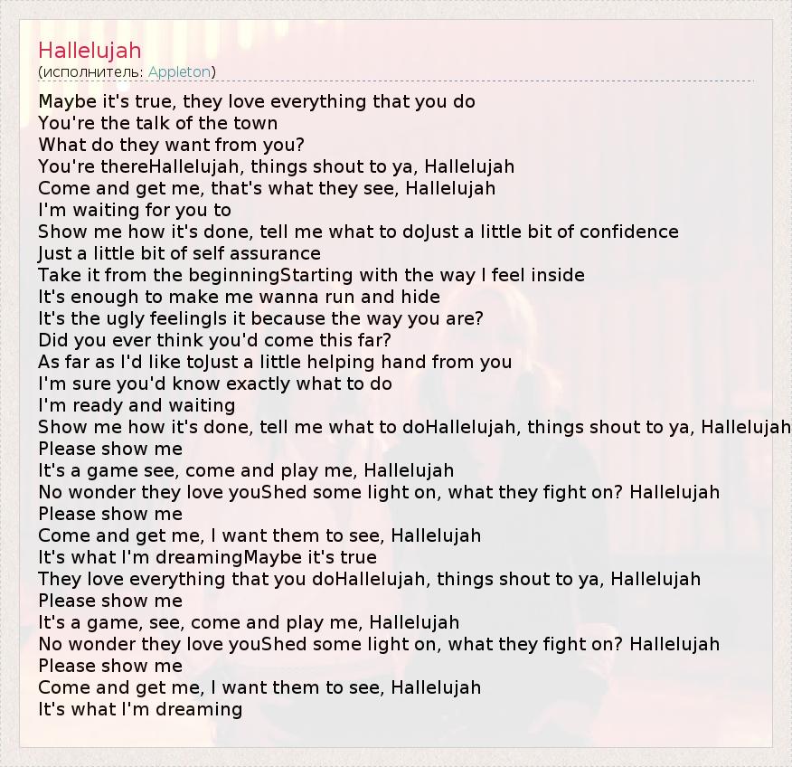 А как ты думаешь, о чем песня "Hallelujah" ?
