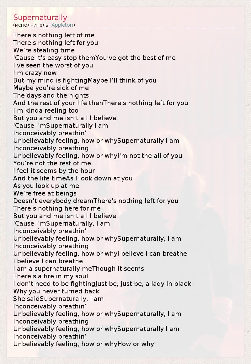 А как ты думаешь, о чем песня "Supernaturally" ?
