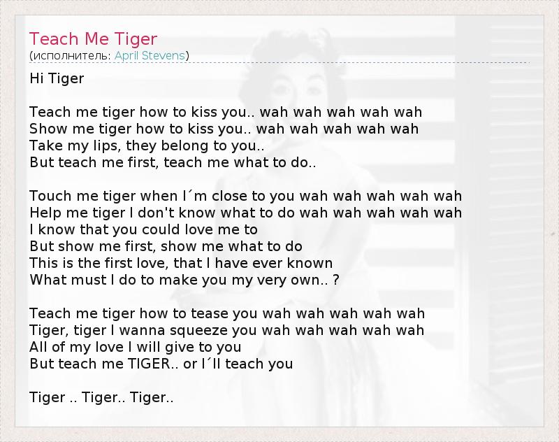 А как ты думаешь, о чем песня "Teach Me Tiger" ?