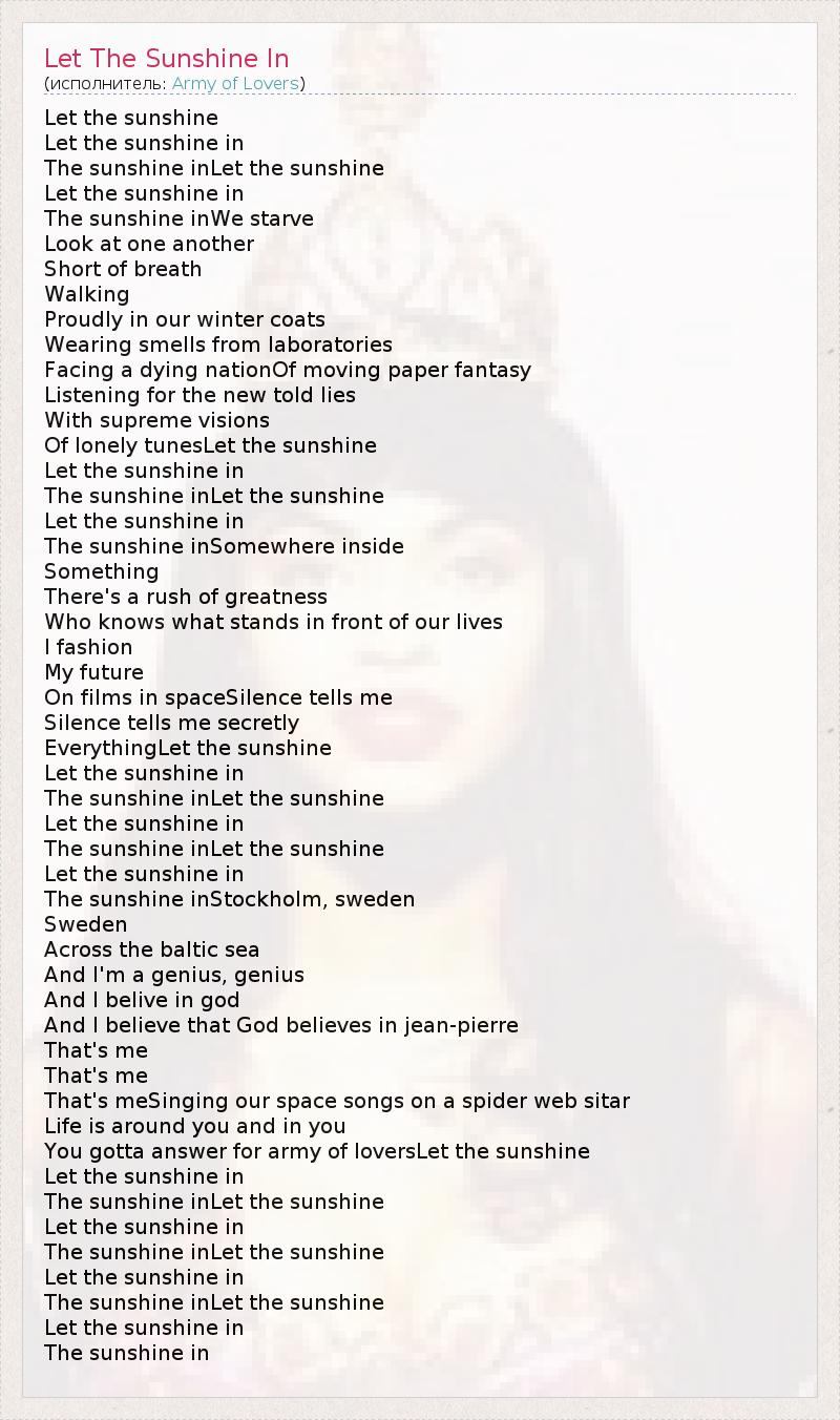 А как ты думаешь, о чем песня "Let The Sunshine In" ?