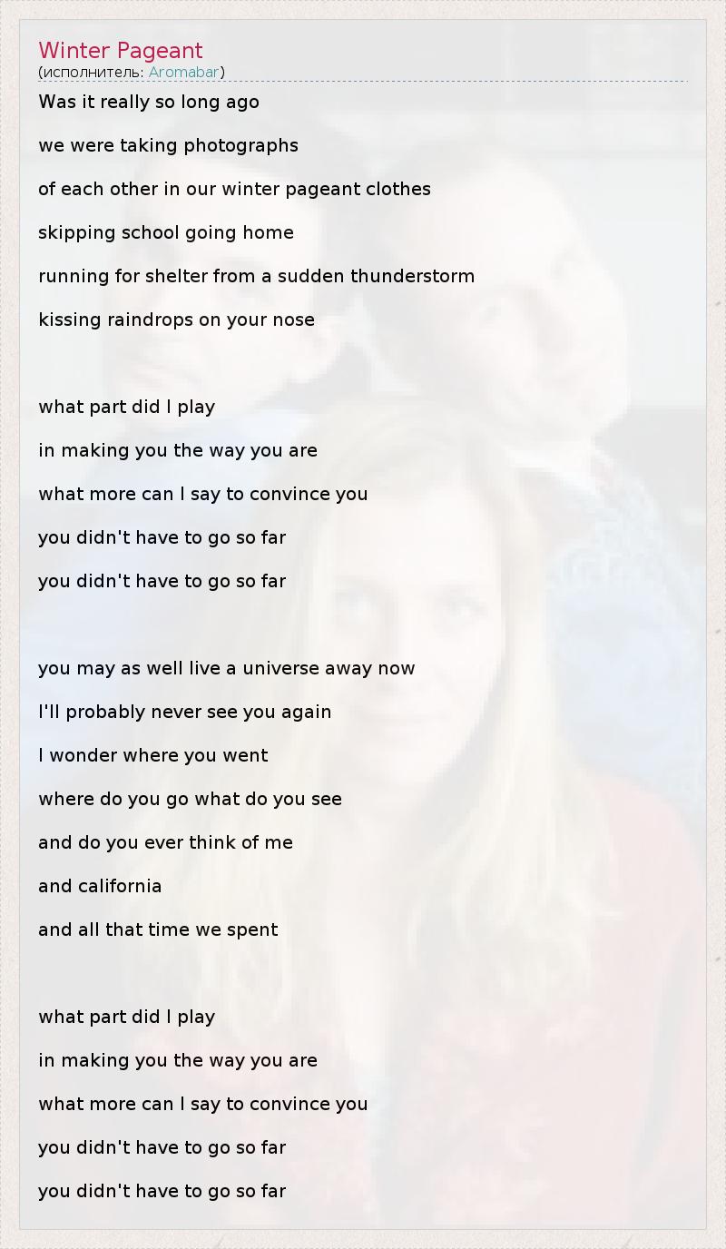 А как ты думаешь, о чем песня "Winter Pageant" ?