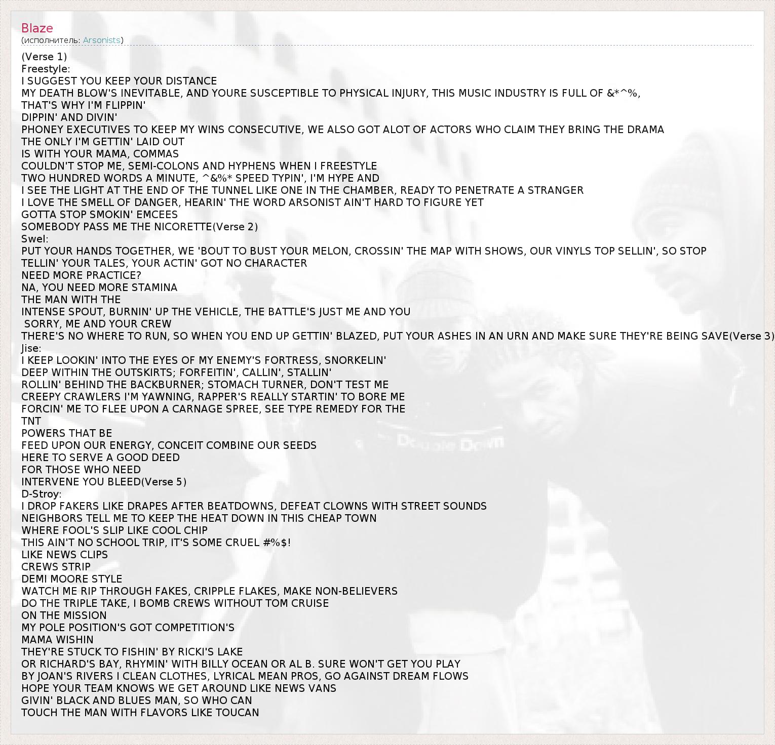 I LOVE THE SMELL OF DANGER, HEARIN' THE WORD ARSONIST AIN'T HARD TO FIGURE YET