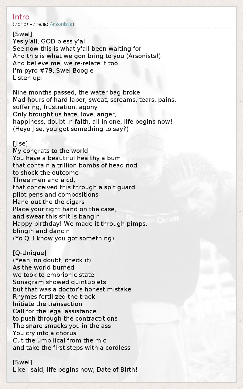 Это интересно:Начало существованию группы было положено в 1993, когда был основан бруклинский "хип-хоп отряд" Bushwick Bomb Squad (Bushwick - район Бруклина). Это была действительно "взрывная смесь" сразу из нескольких талантливых эМСи (число их в одно время достигало 13), которая со временем переросла в The Arsonists ("Поджигатели"). У многих коллективов есть явный лидер, играющий главную роль; другие же участники... продолжение