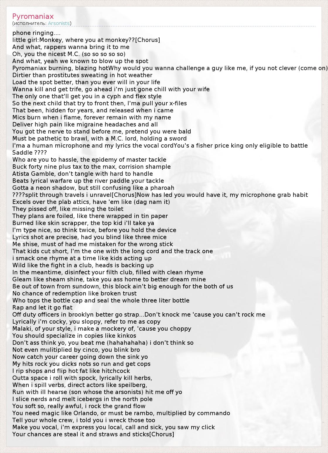 А как ты думаешь, о чем песня "Pyromaniax" ?