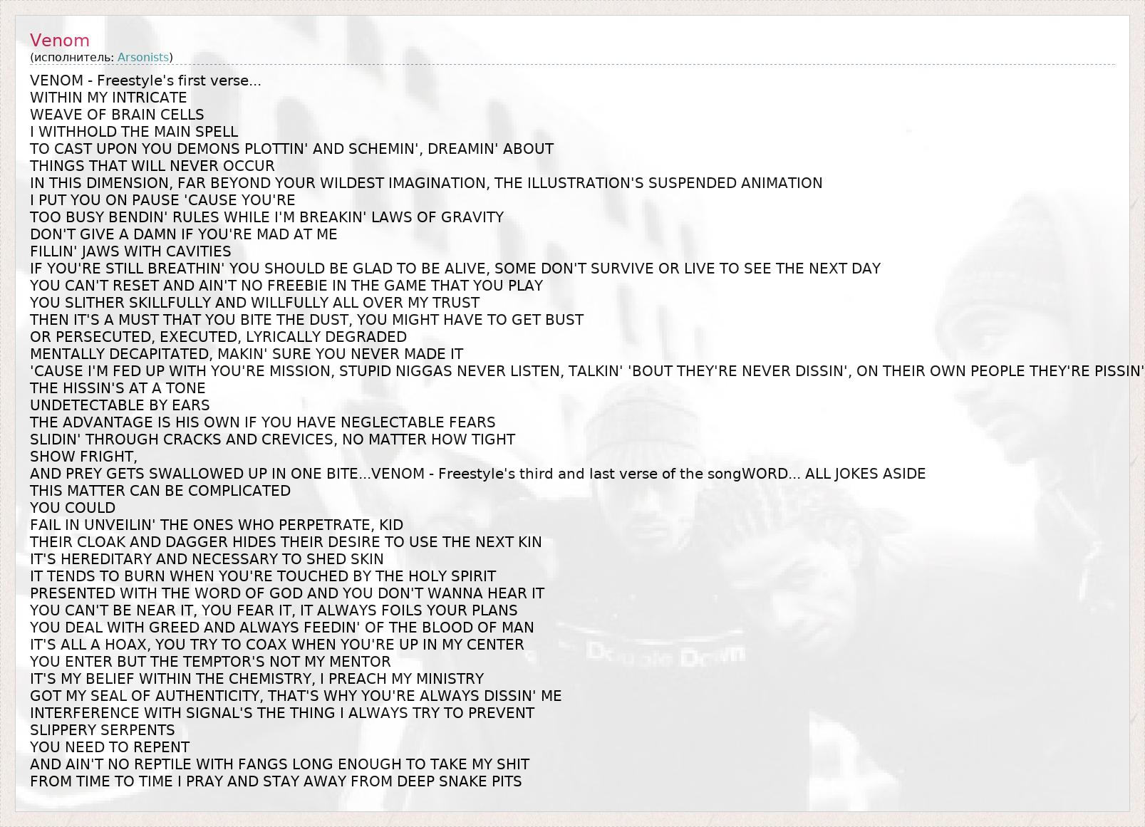 AND PREY GETS SWALLOWED UP IN ONE BITE...VENOM - Freestyle's third and last verse of the songWORD... ALL JOKES ASIDE