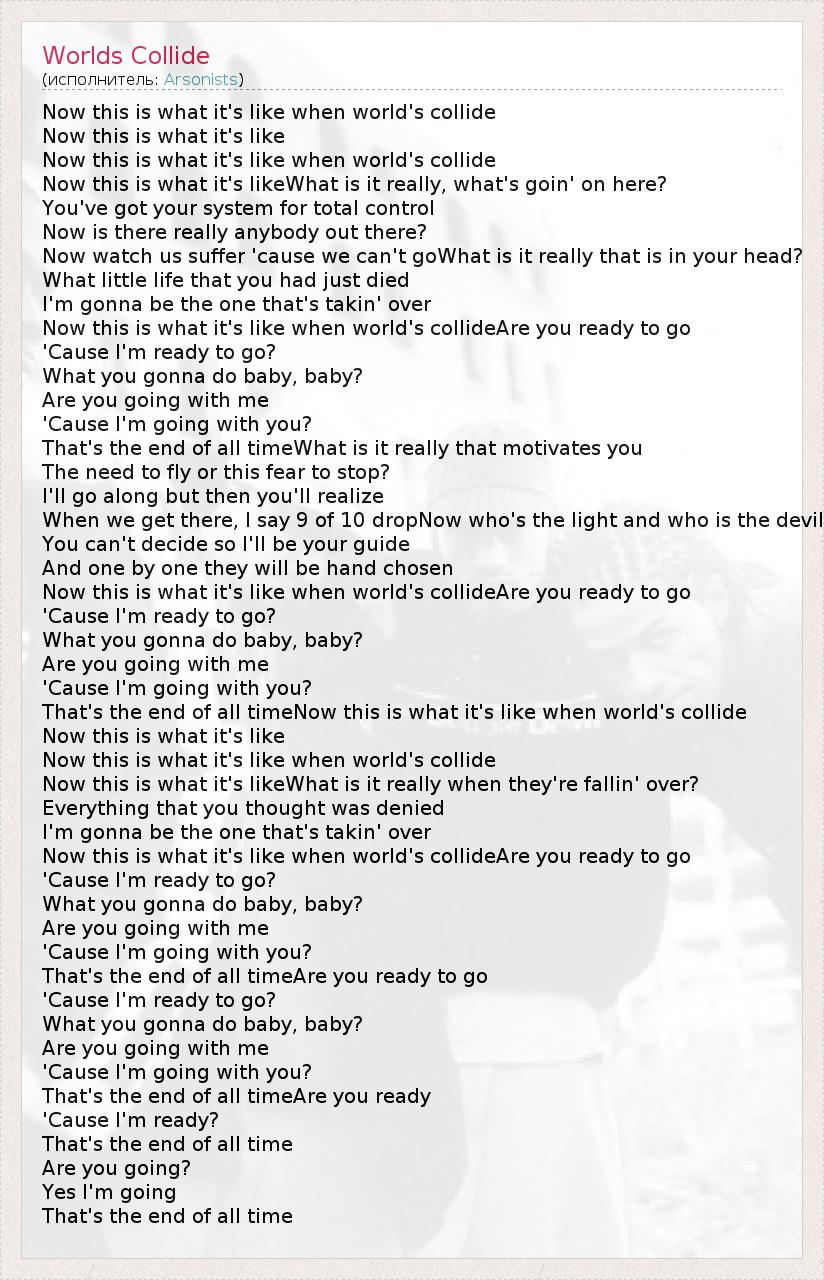 А как ты думаешь, о чем песня "Worlds Collide" ?