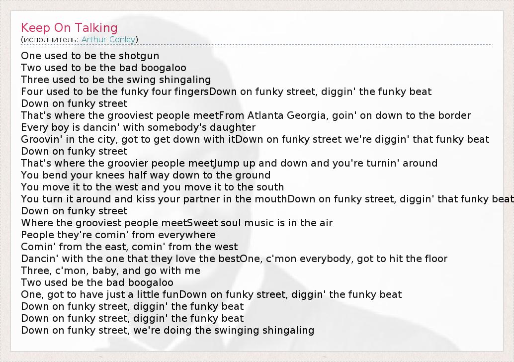 А как ты думаешь, о чем песня "Keep On Talking" ?